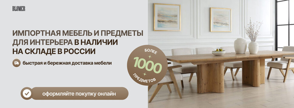 В Blomer вы можете подобрать и приобрести предметы интерьера и мебель от американских компаний Uttermost и Ashley Furniture, канадской – Elran и итальянских – Altacorte, Prama, Camelgroup, Dialma Brown, Bruno Piombini и Respace, а также Cavio, Cis salloti и др.