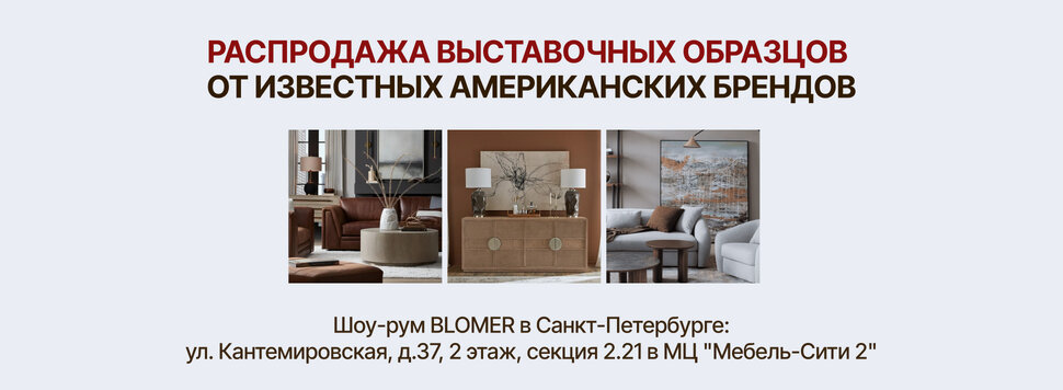 В Blomer вы можете подобрать и приобрести предметы интерьера и мебель от американских компаний Uttermost и Ashley Furniture, канадской – Elran и итальянских – Altacorte, Prama, Camelgroup, Dialma Brown, Bruno Piombini и Respace, а также Cavio, Cis salloti и др.