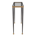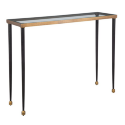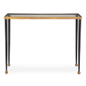 Элегантная консоль Stiletto станет стильным акцентом в прихожей или коридоре. Каркас выполнен из прочного железа, столешница с текстурной отделкой в античном золотом цвете гармонирует с зауженными черными ножками и маленькими золотыми акцентами. Верхняя поверхность выполнена из прозрачного стекла, создавая легкий и современный образ.