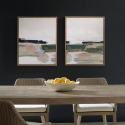 Абстрактные пейзажи с плавными переливами лососевого, розовато-лилового, зеленого и кремового оттенков. Текстуры мягко перетекают друг в друга, создавая глубину. Рама — светлый дуб. Ручное производство, печать в США. Дизайн Дафф Хаус.