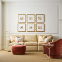 Garden Mist — это комплект из шести холстов, эксклюзивно представленных в Revelation. Каждая работа оформлена в паспарту белого оттенка с текстурой льна, которое можно очищать, и дополнена уникальной рамой с кантом в отделке под античное сусальное золото, имитирующей мягкие волны воды. Композицию можно размещать вертикально.
