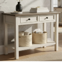 Консольный стол Bolanburg привносит в интерьер очарование загородного дома благодаря своему уникальному двухцветному дизайну с эффектом искусственного старения. Это идеальное решение для размещения в прихожей, гостиной за диваном или под окном.