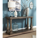 Этот консольный стол Джонелла / Johnelle от американской фабрики Ashley, привлечет внимание потертой серой отделкой и квадратными балясинами, установленными на широкой нижней полке. Изготовлен из шпона вяза и столешницей с эффектом доски в раме.