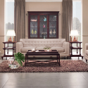 Элегантная модель с благородными линиями и деталями. Диван обит прочной кремовой рогожкой, а внутренняя часть спинки украшена декоративной стежкой капитоне с изящными пуговицами.