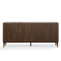 Буфет выполнен из высококачественного МДФ. Отделка - натуральный шпон высокосортного кронированного вяза, тонированного в теплый коричневый цвет. Столешница - керамика в бежевых тонах. На ножках колпачки из матовой нержавеющей стали в цвете латунь. У буфета 4 распашные дверцы с доводчиками, что обеспечивает их плавное закрывание. За каждой дверцей расположена стеклянная полка из закаленного стекла. Для большей устойчивости тумба оснащена дополнительной ножкой по центру в углублении.