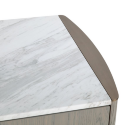 Эстетику буфета определяют благородные материалы: корпус выполнен из натурального шпона вяза, а столешница изготовлена из мрамора с изящными бежевыми прожилками. Это сочетание придает интерьеру утонченность и завершенность, характерные для итальянской мебели.