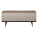 Испанский бренд MOD Interitors представляет буфет, в котором угадывается дух 60-х, переосмысленный на современный лад. Строгий матово-черный корпус приподнят на высоких ножках с бронзовыми колпачками, создавая впечатление легкости. Особенность модели — светорассеивающие фасады, которые делают ее внешний вид динамичным при любом освещении. Altea — это не просто мебель, это проявление вашего вкуса и стремления к гармонии. Столешница буфета выполнена в натуральном шпоне ореха и имеет скругленные углы, что предотвращает травмирование. Фасады в отделке благородным бежевым матовым лаком.