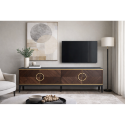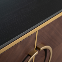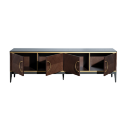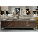 Четырёхдверная ТВ-тумба из коллекции «ШПОН». Авторский дизайн Garda Studio в стиле ар-деко. Размер: 200×58×40 см. Фасады отделаны шпоном «Американский орех» с ручками и декоративными элементами цвета «матовое золото». В коллекцию также входят прикроватная тумба и консоль. Обратите внимание: цвет на экране может незначительно отличаться от реального.