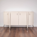 Представляем вам буфет в стиле ар-деко, который будет прекрасно сочетаться с вашей столовой комнатой. Буфет имеет объемные изогнутые ножки, что является характерной чертой этого стиля. Он оснащен двумя прямыми и двумя скругленными дверцами с рифлеными фасадами, которые добавляют особый шарм и оригинальность.