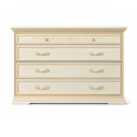 Элегантный и функциональный низкий комод из коллекции Torriani Night Avorio 128CMS.01AV итальянской фабрики Camelgroup в цвете слоновая кость. Комод обладает прямыми фасадами и четырьмя выдвижными ящиками для удобного хранения. Верхний ящик и обрамление фасадов украшены ажурной резьбой, придающей комоду изысканный вид.