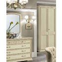 Двухдверный платяной шкаф коллекции Torriani Night Avorio от итальянской фабрики Camelgroup представлен в цвете слоновая кость. Шкаф имеет распашные двери и одно широкое отделение. Фасады украшены изящной резьбой. Возможность установки зеркал выбирается при заказе.