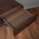 Столешница и выдвижной ящик покрыты шпоном, ножки черные металлические, с декоративными колпачками.