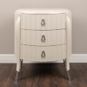 Тумбочка оснащена тремя просторными ящиками, которые обеспечивают вам достаточно места для хранения необходимых предметов. Металлические наконечники на ножках тумбочки придают ей стильный и элегантный вид, а их цвет шампань добавляет нотку изыска и роскоши.