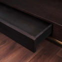 Стол выполнен из высококачественного МДФ высокой плотности. Отделка - натуральный шпон ореха тонированный в цвет горького шоколада. Металлическая структура - нержавеющая сталь в цвете латунь.