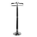 Изящная напольная вешалка с плечиками — идеальное решение для бережного хранения одежды, которое станет стильным дополнением к интерьеру спальни, гардеробной или прихожей. Низкая вешалка не займет много места, но обеспечит аккуратное развешивание одежды без риска образования складок и заломов. Она выполнена из металла с черным кожаным покрытием и дополнена декоративными элементами из полированного хрома, что придает изделию изысканный и респектабельный вид. Эта вешалка не только практична, но и эстетически привлекательна, подчеркивая ваш вкус и стиль.