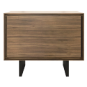 Тумбочка выполнена из высококачественного, сертифицированного МДФ высокой плотности. Отделка - натуральный шпон северо-американского ореха (finished walnut V36F veneer). Ноги выполнены из метала и окрашены в черный матовый цвет (matt black lacquered SS4).
