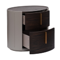 Тумбочка овальной формы в стиле ар-деко — идеальный союз элегантности и функциональности для современного пространства. Два вместительных ящика с лаконичными золотистыми ручками предлагают практичное решение для хранения, помогая поддерживать порядок. Её благородная отделка тёмным шпоном и округлые силуэты создают сдержанный, но выразительный акцент. Эта модель виртуозно дополнит дизайн спальни у кровати или станет стильным элементом в прихожей, служа как удобной подставкой для книг, декора или вазы с цветами, так и эффектной деталью интерьера. Garda Decor.