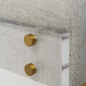 Пышная, нежная ткань экрю словно парит в воздухе, поддерживаемая ножками из прозрачного акрила, напоминающими драгоценные камни. Основания ножек из нержавеющей стали, крепежные элементы и перекладина оформлены в матовой отделке «античная латунь». Скамья выполнена из высокопрочной ткани, устойчива к пятнам, а её элегантный «водопадный» край придаёт чистый и изысканный вид.