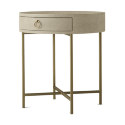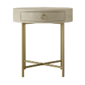 Прикроватная тумба «Irene» — образец вневременной элегантности. Круглая столешница, обитая кожей с текстурой ската, и латунные ножки создают безупречный акцент. Эта тумба сочетает изысканный дизайн и практичность, предлагая удобную поверхность и место для хранения у кровати. Нейтральный бежевый цвет и классические формы позволяют ей гармонично вписаться в любой интерьер спальни.