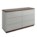 Испанский бренд MOD Interiors представляет комод из коллекции Altea. Модель впечатляет не только вместительностью, но и изысканной палитрой материалов: матовый светло-серый лак корпуса эффектно контрастирует со столешницей и базой из тёплого шпона ореха. Это инвестиция в стиль на долгие годы. Ящики дополнены системой легкого открывания push-to-open (открывание нажатием без ручек). Фасады гладкие, без узора.