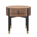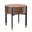 Тумбочка круглая, на высоких ножках от Mod Interiors — редкий и сложный в исполнении предмет для ценителей уникального дизайна. Её лёгкая, но прочная конструкция объединяет тёплое дерево и графичный металл: корпус из МДФ отделан благородным шпоном американского ореха, а стройные опоры и ручка выполнены в глубоком матово-чёрном лаке. Детали из латуни добавляют деликатные акценты.