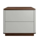 Прикроватная тумбочка с двумя ящиками MDI.BST.ALT.24 из коллекции Altea от испанского бренда MOD Interiors создает яркий и свежий акцент благодаря контрастной отделке. Закругленные углы придают модели мягкость, смягчая строгие прямые линии, и делают ее более безопасной и удобной в использовании. Тумбочка выполнена из высококачественного МДФ высокой прочности. Отделка корпуса и фасадов - матовый лак приятного светло-серого оттенка. Отделка столешницы и базы - натуральный шпон ореха. Два ящика дополнены системой легкого открывания push-to-open (открывание нажатием без ручек). Фасады гладкие, без узора.