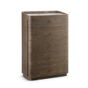 Эргономичный дизайн с закруглёнными формами для безопасности. Керамическая столешница с защитными бортиками предотвращает падение предметов. Итальянское качество и функциональность для современного интерьера. Комод выполнен из высококачественного МДФ. Отделка - натуральный шпон высокосортного кронированного вяза, тонированного в теплый коричневый цвет. Столешница - керамика в бежевых тонах. Внутри ящиков покрытие меламин. Ручки - метал в цвете латунь. Комод оснащен шестью выдвижными ящиками, которые обеспечивают удобное и организованное хранение. Ящики cо скрытыми направляющими и системой плавного закрытием soft close. Дно верхнего ящика покрыто бархатной тканью.