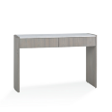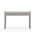 Благородство и изысканность консоли подчеркиваются премиальными материалами: корпус выполнен из натурального шпона вяза, а столешница изготовлена из мрамора с деликатными бежевыми прожилками. Такое сочетание делает модель универсальным решением для современного интерьера, добавляя ему строгости и элегантности.