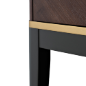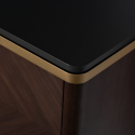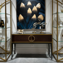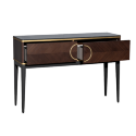 Консоль с двумя ящиками из коллекции «ШПОН». Авторский дизайн Garda Studio в стиле ар-деко. Размер: 120×35×80 см. Фасады отделаны шпоном «Американский орех» с ручками и декоративными элементами цвета «матовое золото». В коллекцию также входят ТВ-тумба и прикроватная тумба. Обратите внимание: цвет на экране может незначительно отличаться от реального.