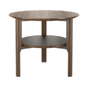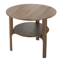 Модель сочетает в себе изысканность и практичность. Верхний и нижний ярусы выполнены из шпона благородного американского ореха, а прочные ножки из массива дерева гарантируют устойчивость. Теплота натуральных материалов и лаконичная круглая форма делают столик универсальным элементом любого интерьера.