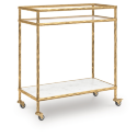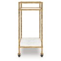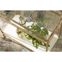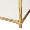 Непринужденный дизайн: рама цвета старинной латуни, нижняя полка из белого мрамора, верхняя — из прозрачного стекла.Особенности: