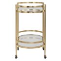 Современный сервировочный столик, в котором индустриальный характер железа смягчен благородным покрытием из сусального золота. Эта деликатная отделка придает изделию изысканный лоск и теплоту. Две стеклянные полки сохраняют визуальную легкость, а колесики обеспечивают идеальную мобильность, позволяя легко превращать его в барный или сервировочный островок в любой точке комнаты. Универсальный дизайн гарантирует гармоничное сочетание с большинством стилей интерьера.