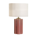 Настольная лампа “Туоми” – станет стильным акцентом в любом интерьере. Основание из коралловой керамики с оригинальной рельефной формой и глянцевым покрытием смотрится элегантно и современно. Лампа дополнена лаконичным абажуром цилиндрической формы из текстиля в белом цвете, который мягко рассеивает свет и создаёт уютную атмосферу. Декоративная металлическая вставка с золотистым блеском добавляет изысканности.