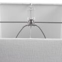 Лампа с комбинированным основанием: матовая керамика, декоративные кристаллы и вставки из матового никеля. Сочетание тактильных и светоотражающих поверхностей создаёт современный образ. Абажур из кремового льна завершает композицию, даря мягкий, тёплый свет.