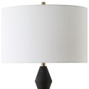 - ОписаниеНастольная лампа, где скульптурная мощь встречает винтажный шарм. Монументальное основание из литого чёрного искусственного камня с графичными фасками сочетается с тёплым сиянием деталей из античной латуни. Этот выразительный дуэт смягчает абажур классической формы из светлого льна, создающий атмосферу уютного, рассеянного света.